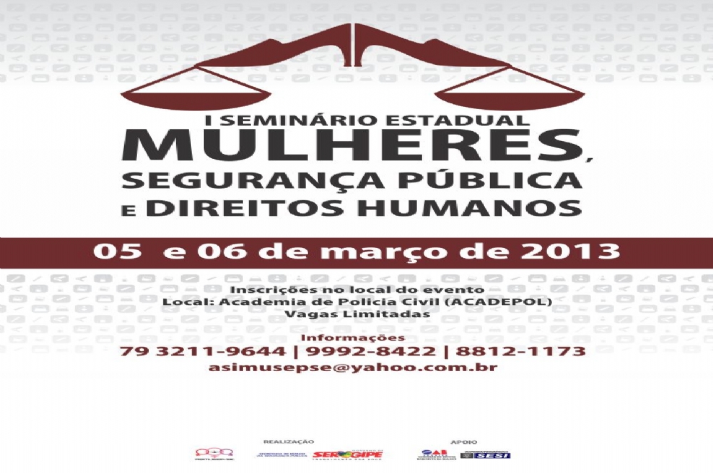 1º Seminário Estadual Mulheres, Segurança Pública e Direitos Humanos, realizado pela Associação Integrada de Mulheres da Segurança Pública, ASIMUSEP, que vai acontecer nos dias 05 (das 13 às 18hs) e 06 (das 08 às 18hs) de março, no auditório da Academia de Polícia Civil (Acadepol). O evento é gratuito e as inscrições ocorrerão no local durante o credenciamento às 13hs do dia 05 de março.
