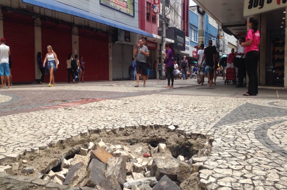 Os calçadões do centro comercial de Aracaju, principal ponto de circulação popular no centro comercial, está cada vez mais perigoso para os transeuntes. Em alguns trechos, buracos se formaram e as tradicionais pedras portuguesas estão soltas no pavimento, oferecendo risco às milhares de pessoas que transitam pelo local diariamente. Em um dos cruzamentos de calçadões, um grande buraco se formou e as pessoas desviam para não cair.