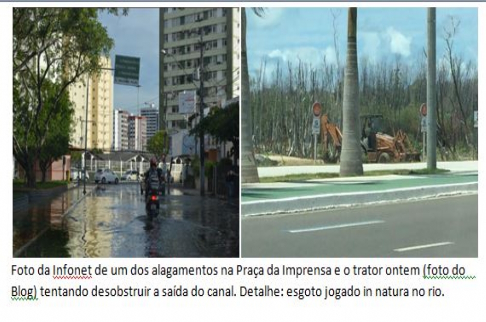Saúde Pública – O morador ressaltou ainda que após as chuvas e o esgoto com merda descer dos pisos das casas, um fedor é insuportável, uma questão de saúde pública que deve afetar as pessoas da terceira idade. Aliás, nas ruas e calçadas, cria-se uma espécie de limo que cresce rapidamente. Sem falar no lixo boiando, já que a coleta está deficitária.
