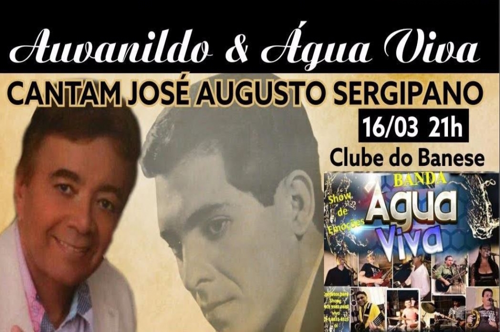 cantam José Augusto sergipano. Será no Clube do Banese, a partir das 21h.Mesas a venda no Clube.