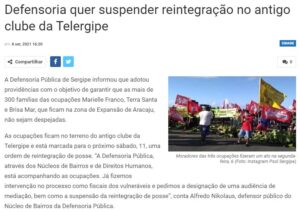 Defensoria pública em defesa de quem tem dinheiro? Maioria dos “sem tetos” da invasão à beira mar tem imóveis, carros, inclusive têm até policiais no meio e servidores públicos. É Sergipe Del Rey! Plagiando Hemingway sobre Paris: Sergipe é uma festa. A reintegração está marcada para o próximo sábado, dia 11. Leia matéria da Infonet aqui.