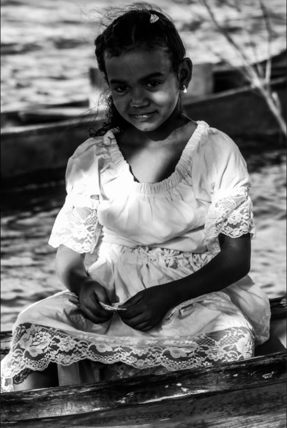 Da série de fotografias do cidadão Wanderson Andrade: https://www.instagram.com/wander.bastoss/ Garotinha quilombola do MOCAMBO, em trajes típicos do samba de coco, dentro de canoa a flutuar sobre as águas do São Francisco.