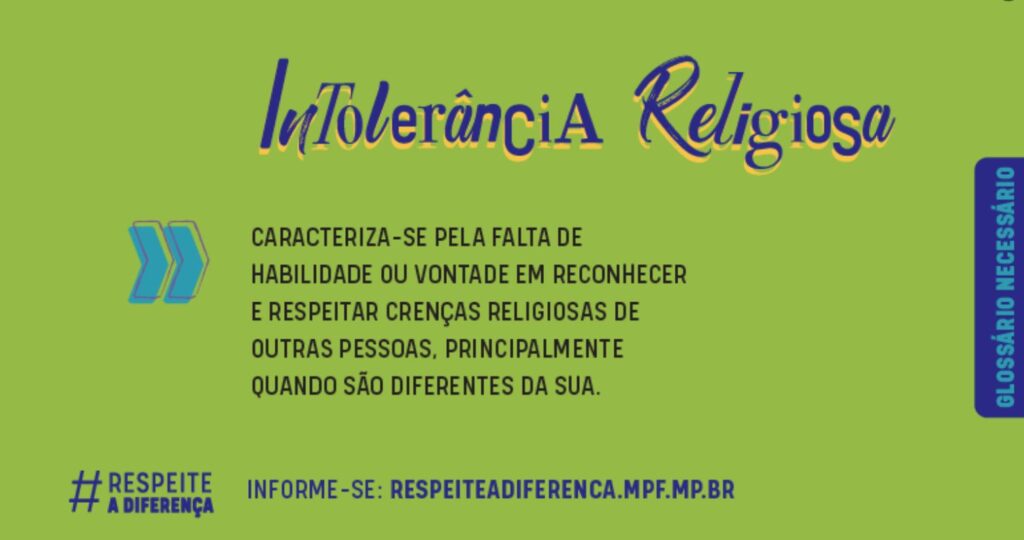 www.twitter.com/MPF_PGR O termo de hoje do nosso glossário necessário é intolerância religiosa. Você sabe o que significa? Fique ligado e vamos juntos compartilhar o respeito! #respeiteadiferença