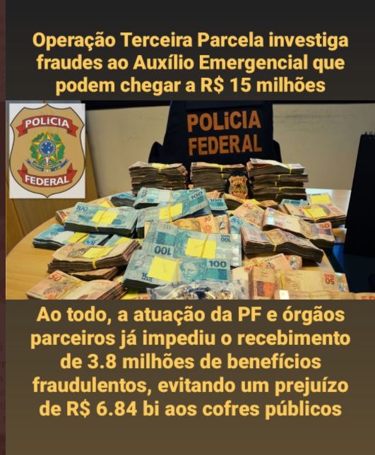 www.twitter.com/policiafederal A PF, atuando em conjunto com os órgãos parceiros na Estratégia Integrada de Atuação contra as Fraudes ao Auxílio Emergencial (EIAFAE), já evitou prejuízos superiores a R$ 6 bilhões aos cofres públicos.