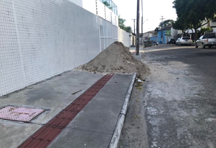Construtora União pensa que a calçada do edifício construído por ela é dela: 10 dias com areia impedindo a passagem de pedestres A foto acima é de uma calçada na Rua Guarapari no fundo do Edíficio Ellegance Atalaia, que apesar do nome é no Bairro Farolândia. Desde a terça-feira, 9, um caminhão da construtora União descarregou areia em cima da calçada, que só foi usada uma pequena parte no mesmo dia a noite. O blog esperou 10 dias, mas pelo jeito, como fica na parte de trás e os moradores do prédio não são prejudicados a construtora “esqueceu” a areia no local prejudicando a passagem dos pedestres. Será que a Emurb ainda notifica e multa as construtoras? Com a palavra o presidente, Sérgio Ferrari.