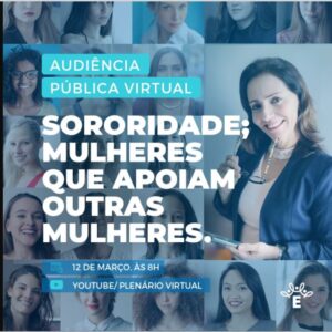 Aracaju (CMA), um ciclo virtual de palestras. Entre elas, está a de autoria da vereadora Emília Corrêa (Patriota), com o tema; “Sororidade, mulheres que apoiam outras mulheres”, no próximo dia 12, às 8h. “Embora a palavra sororidade não seja muito conhecida, para quem não sabe o que significa, trata-se de ter empatia e união entre as mulheres. Faremos isso na Audiência. A finalidade é expandir esses direitos, debater, conscientizar, nos unir e buscar políticas públicas para que cada vez mais as mulheres ocupem seus espaços”, explicou Emília. A audiência contará, ainda, com a participação de autoridades locais e nacionais como a Juíza de Direito da Violência Doméstica e Familiar contra a Mulher de Belo Horizonte (MG), Maria Consentino e Alice Santos (Defensora Pública de Pernambuco) relacionados ao tema, e seguirá todas as restrições impostas pelos Decretos Estaduais e Municipais, visando previnir a propagação do vírus da Covid-19 e garantir a segurança dos participantes, sendo totalmente remota, e transmitida através do YouTube: (https://www.yotube.com/user/camaradearacaju).