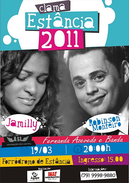 Será no dia 19 de março de 2011 o 2º Clama Estância com as participações de Jamily, Robson Monteiro, Fernanda Azevedo e ASL(Adoração sem Limites).