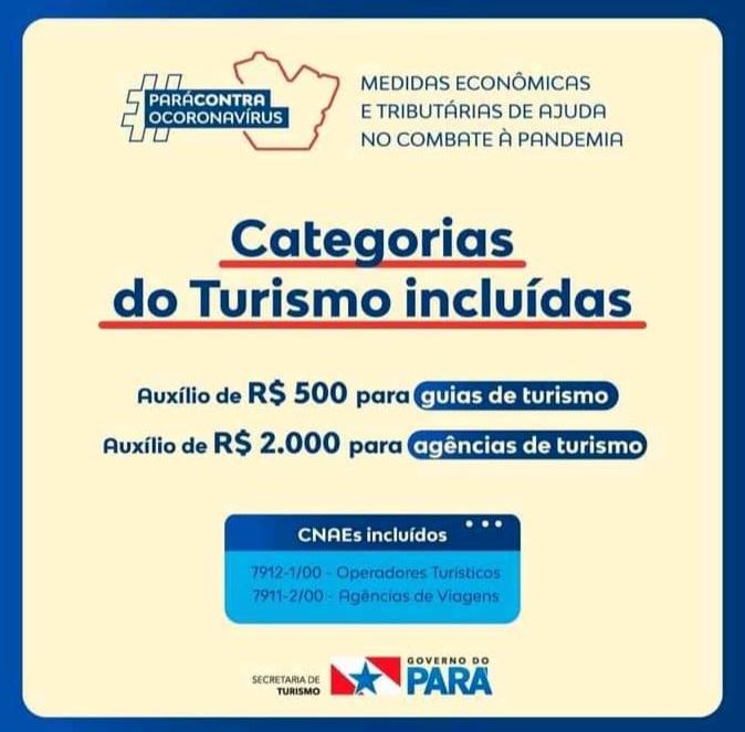 Incentivo governo do Pará para o turismo De uma cidadã nas redes sociais: “Olha aí Governador de Sergipe Belivaldo Chagas! Veja só como é possível ter um senso de responsabilidade, visão e respeito aos profissionais do TURISMO DE SERGIPE.Ligue para o Governador do Pará e peça uma consultoria. O Pará ensinando como se faz uma boa gestão em Turismo, através da valorização dos profissionais. Turismo é a atividade mais geradora de emprego e renda. #ficaadica”