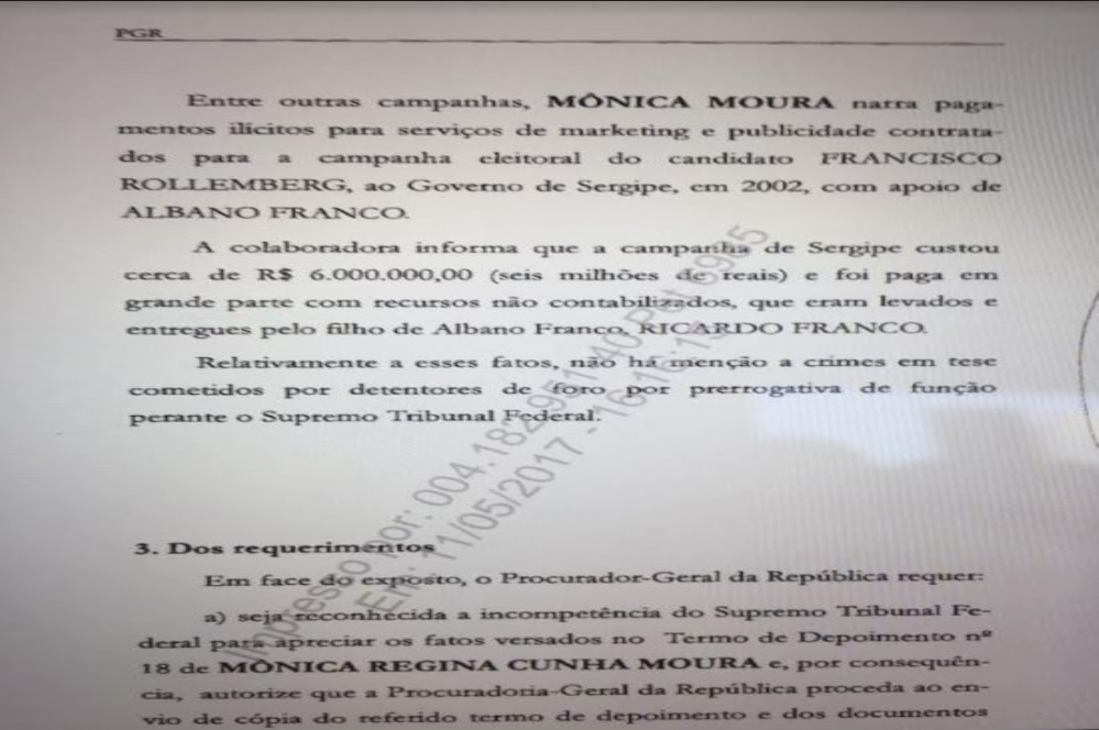 Ricardo Franco pagava através do caixa 2 – No depoimento de Mônica Moura – na Operação Lava Jato – fala do recebimento de boa parte dos R$ 6 milhões da campanha de marketing e publicidade de 2002, em recursos “não contabilizados, que eram levados e entregues pelo filho de Albano Franco, Ricardo Franco, atual suplente da senadora Maria do Carmo.