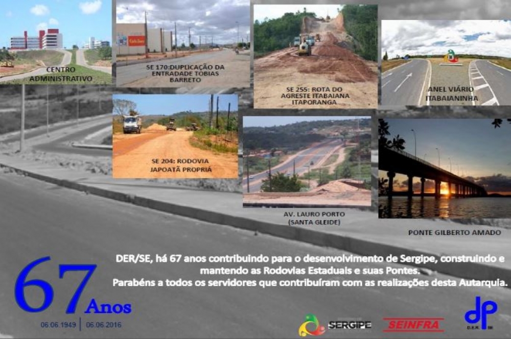 E hoje o Departamento Estadual de InfraEstrutura Rodoviária de Sergipe (DER/SE), completa 67 anos de existência. Um órgão