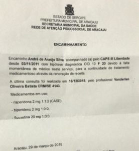 Está faltando psiquiatra nos CAPS III Liberdade do Bairro Siqueira Campos? Ao lado ofício de encaminhamento assinado por uma farmacêutica (o nome foi preservado, mas o blog tem toda a cópia do ofício) do CAPS (Centro de Atendimento Psicossocial) III Liberdade, localizado no Bairro Siqueira Campos, em Aracaju, do último dia 29 de março, para outra unidade por conta da falta de médico para dar continuidade ao tratamento medicamentoso do paciente que tem tratamento desde 2011.