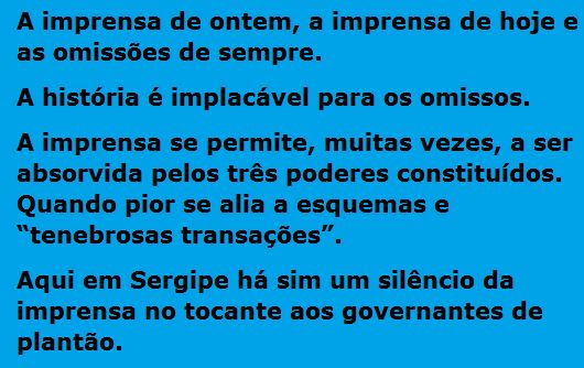 Aqui em Sergipe há sim um silêncio da imprensa no tocante aos governantes de plantão. Em nome de uma terceira chance a quem prometeu resolver tudo, são feitas concessões que beira ao compadrio.