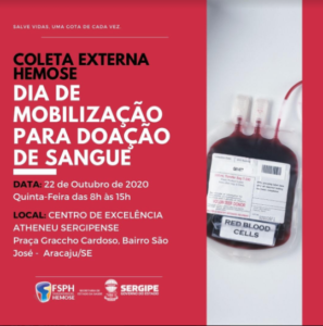 Nesta quinta-feira, 22, das 8h às 15h, o Centro de Hemoterapia de Sergipe (Hemose) em parceria com o Centro de Excelência Atheneu Sergipense realizará uma coleta externa de sangue. A atividade tem por objetivo divulgar a importância do ato regular da doação e melhorar os estoques de todos os grupos sanguíneos: O, A, B e Ab, positivo e negativo. “Queremos informar que devido à pandemia os estoques de sangues estão baixos, por isso faremos a coleta no Atheneu”, explica a gerente de Coleta, enfermeira Florita Aquino, ao avisar que a doação de sangue no Hemose prossegue normalmente até às 17 horas. Em relação ao coronavirus é importante esclarecer que as pessoas que tiveram contato com paciente infectado ou com suspeita da doença devem aguardar 14 dias para doação. Já os pacientes que tiveram o diagnóstico da Covid-19, só poderão doar sangue 30 dias após, a completa recuperação.
