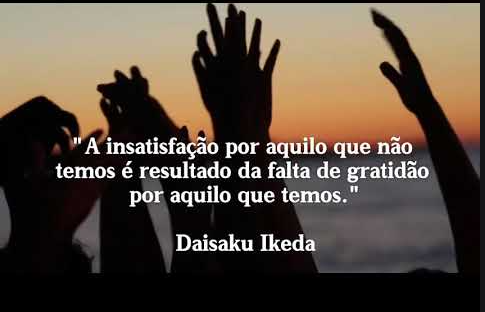 “A insatisfação por aquilo que não temos é resultado da falta de gratidão por aquilo que temos.” Daisaku Ikeda.