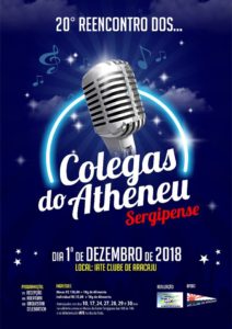 celebração do 20º Reencontro dos Colegas do Colégio Atheneu Sergipense, que já tem data marcada: Dia 01 de dezembro de 2018, a partir das 17h, no Iate Clube de Aracaju. A banda marcial formada por ex-alunos e a Orquestra Celebration (AL) vão aquecer os corações na confraternização que tem como princípio unir amigos, colegas e ex-professores, reviver e rememorar as lembranças de uma época áurea do Atheneu Sergipense.