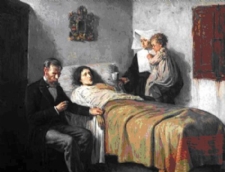 | Médico assiste paciente terminal. Gravura do século XIX |