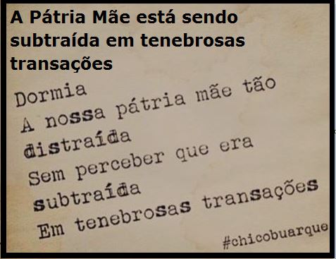 Chico Buarque tem razão: “dormia a Pátria Mãe tão distraída, sem perceber que está sendo subtraída em tenebrosas transações…!”