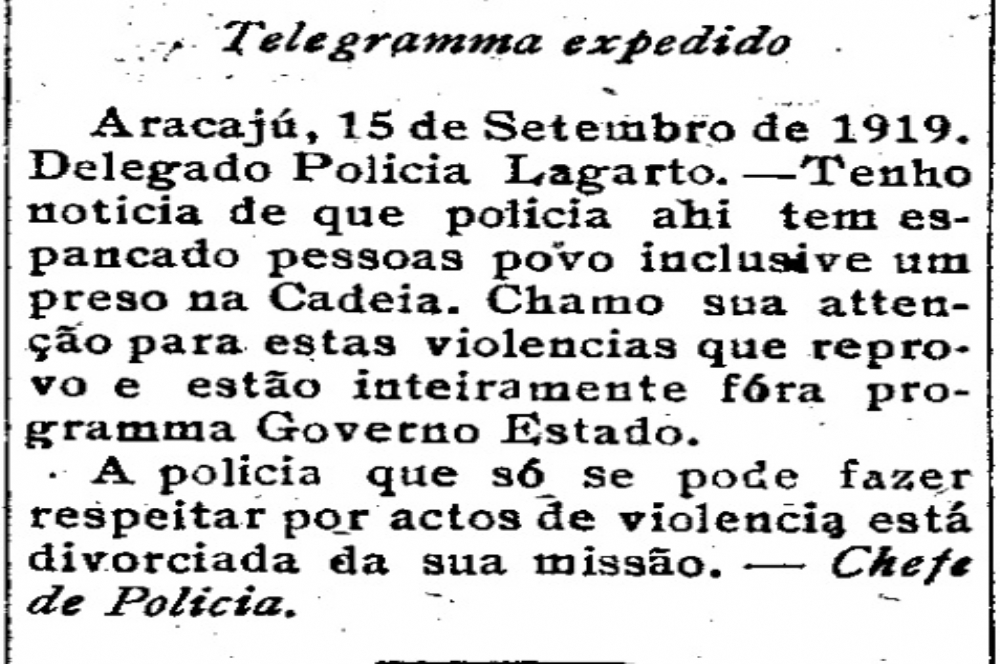 | Publicado no jornal Estado de Sergipe, em 16 de setembro de 1919. |