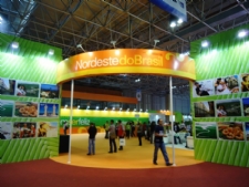 turísticas e fechar negócios na Feira das Américas – Abav 2010, que acontece no Riocentro, Rio de Janeiro, até o dia 22 de outubro. A solenidade de abertura aconteceu nesta quinta-feira (20), com a participação de ministros, especialista da área, formadores de opinião do Brasil e de mais de 40 países e visitantes.     Entrada de exposição dos estados nordestinos. Mídia compartilhada
