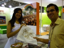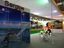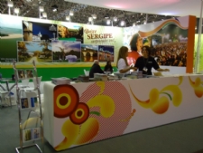 promocionais com fotos do Complexo Xingó. “É uma oportunidade de consolidar o destino Canindé do São Francisco para o Brasil, trazendo um diferencial e aproveitando as oportunidades”, destaca Sílvia de Oliveira, secretaria de Turismo de Canindé.     Estande de Sergipe com destaque para a praia do Saco – Estância