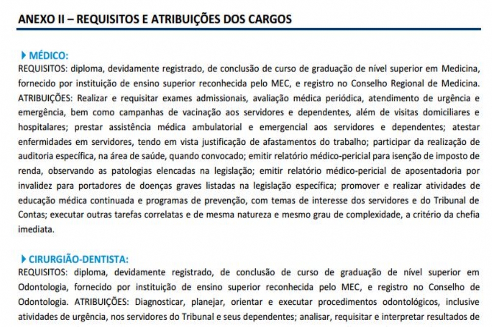 de conhecimento geral, a divulgação de um concurso público para médicos, odontólogos e enfermeiros, para o quadro do desmoralizado TCE. A pergunta que faço é: Por que?