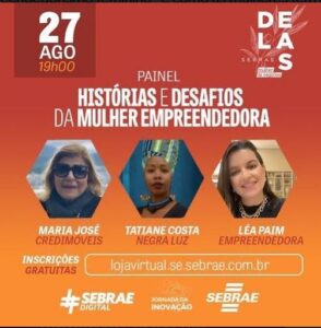 Painel hoje, 27/08, às 19h “Histórias e desafios da mulher empreendedora” Acontece hoje, 27, às 19h, o painel “Histórias e desafios da mulher empreendedora” que vai debater sobre o empreendedorismo feminino e como as mulheres têm assumido posições de grande relevância na economia e no mercado de trabalho. O poder de gestão, a apurada percepção do mundo e a firmeza em busca dos objetivos, são características imprescindíveis para o enfrentamento dos desafios das empreendedoras. Inscreva-se gratuitamente no evento do Sebrae: https://lojavirtual.se.sebrae.com.br/loja/evento/212000332