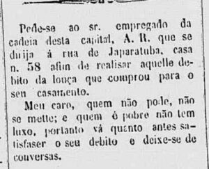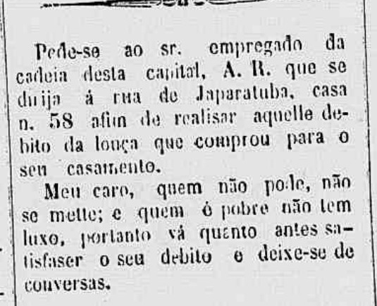 Publicado no jornal aracajuano A Polícia, em 2 de julho de 1876.
