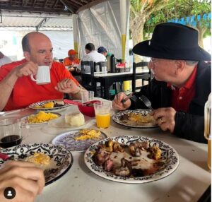 Quando se trata de saborear uma boa comida típica sergipana, o deputado estadual Luciano Bispo (PSD) é o que se pode chamar de um sujeito bom de garfo. O parlamentar pessedista não dispensa um robusto café da manhã antes de começar as visitas aos amigos nos povoados itabaianenses. Neste último final de semana, Bispo e o vereador Anderson Pereira (PSD) traçaram um cuscuz com carne e ovos no Quiosque de Pipiu. Aqui pra nós, deu água na boca. Arre égua!