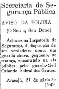 Publicado no jornal aracajuano O Tempo, em 31 de maio de 1949.