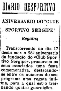 o Cotinguiba Esporte Clube e o Club Sportivo Sergipe completaram, agora em outubro, 116 anos de fundação. O “Tubarão da Praia” foi fundado no dia 10 de outubro de 1909, enquanto o “Mais Querido” iniciou sua jornada esportiva no dia 17 dos mesmos mês e ano. Embora sejam conhecidos por suas atuações no futebol, Cotinguiba e Sergipe tiveram suas origens no remo. Presidente da Federação Sergipana de Futebol, o vereador aracajuano Milton Dantas (PSD) lembrou que o Sergipe é fruto de uma dissidência da diretoria do Cotinguiba. Parabéns aos torcedores rubros e cotinguibenses. Supimpa!
