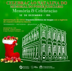 Programação II Já a Orquestra Sinfônica de Sergipe, sob a regência do maestro Guilherme Mannis, entoará canções natalinas. Por conta das medidas sanitárias de prevenção à Covid-19, a apresentação, que foi gravada no Teatro Tobias Barreto, será projetada na fachada do prédio centenário, inaugurado em 1895. Serão disponibilizadas cerca de 400 cadeiras na rua para acomodar o público. Este ano, mesmo sendo um evento em local aberto, é necessário o uso de máscara. O Natal do Memorial acontece há dez anos, momento em que o Judiciário se confraterniza com a população aracajuana.