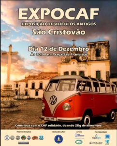 EXPOCAF – Exposição de veículos antigos em São Cristóvão No próximo sábado 11 e no domingo, 12, acontecerá a EXPOCAF – Exposição de veículos antigos em São Cristóvão, a partir das 10h na Praça São Francisco. A entrada será gratuita também para o Museu de Artes Sacras. A exposição encerra o ano de 2021 das diversas exposições de veículos antigos que foram sucesso total. O evento pede a doação de dois quilos de alimento para o trabalho social da coordenação.