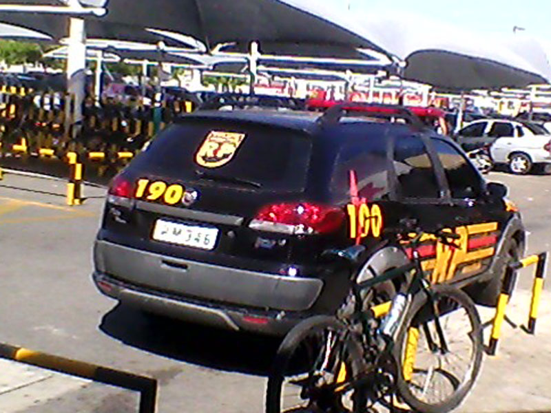 Veículo da PM estacionado ontem no GBarbosa. |