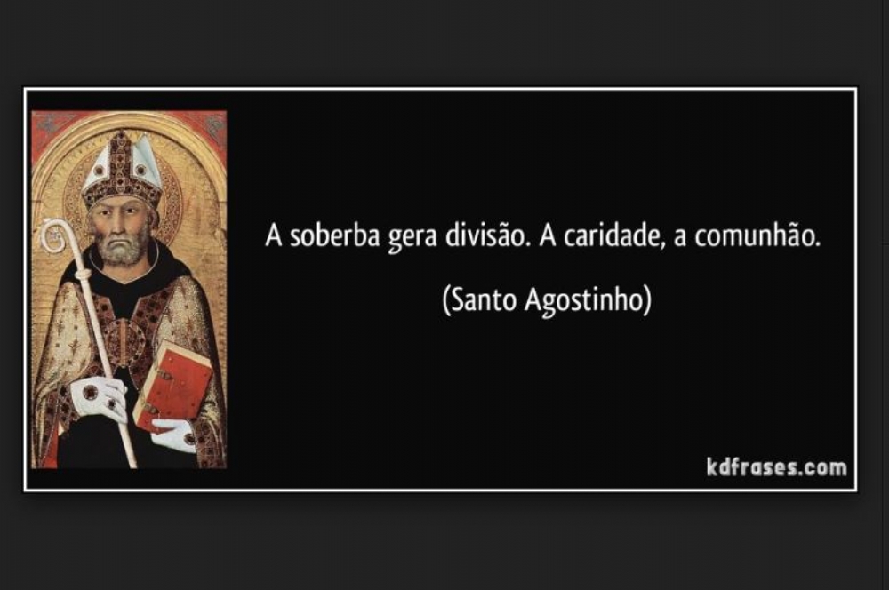 “A soberba gera divisão. A caridade, a comunhão”. Santo Agostinho.