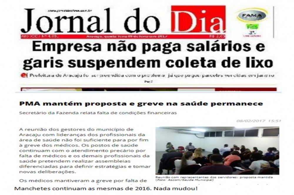 Aracaju fede – O título do artigo de ontem do jornalista Adiberto de Souza, aqui na Infonet tem toda verdade. E além da greve dos profissionais da área de saúde, agora também do garis e margaridas.