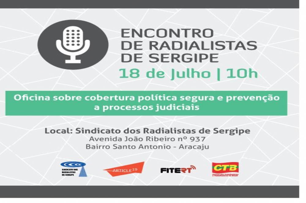 No próximo sábado, 18, o Sindicato dos Radialistas de Sergipe estará realizado mais uma oficina em parceria com a Article19, que