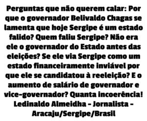 Assembleia mudará a qualidade de vida dos sergipanos? Ou ajudará no desenvolvimento de Sergipe? Que os nobres deputados respondam.