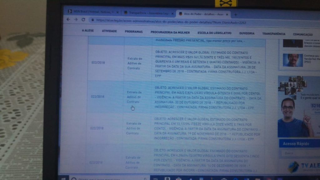 Por outro lado como o leitor pode perceber no print acima já foram realizados quatro aditivos na obra de reforma e colocação da nova fachada do prédio da Assembleia. Seria bom que o MPE entrasse em ação já que se depender do TCE nada acontecerá. Aliás, será que esta reforma da fachada da
