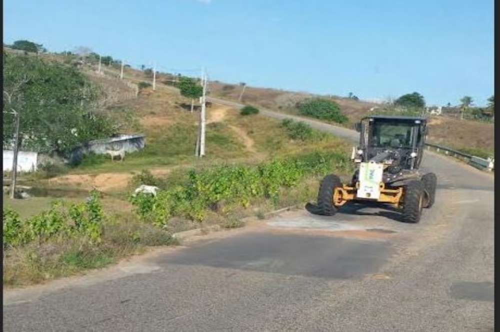 São Francisco: Prefeitura coloca máquina no lugar de cavaletes em uma curva de estrada