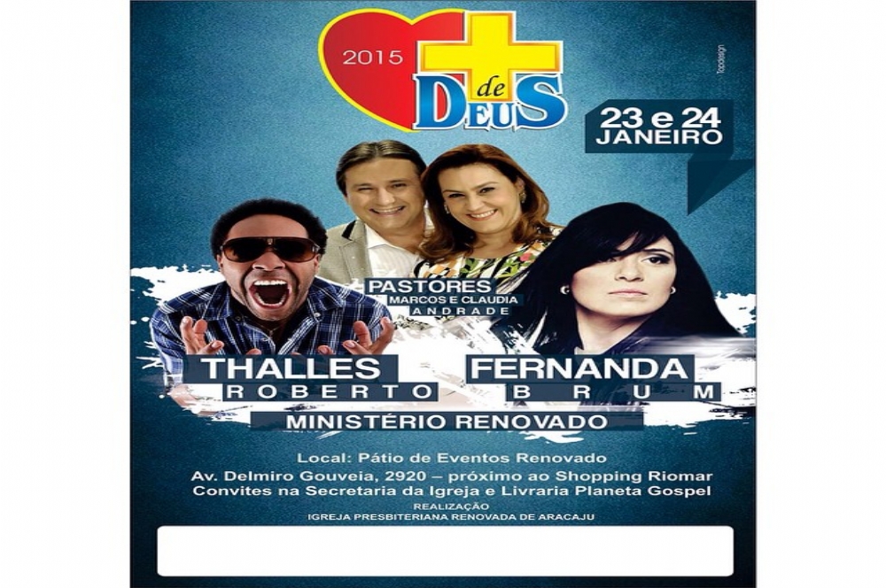 em Aracaju (SE). Este ano evento terá a presença dos cantores nacionais Thalles que é marcado por belas canções e Fernanda Brum reconhecida internacionalmente pelo seu trabalho. A festa será realizada no Pátio de Eventos Renovado que fica na Av. Delmiro Gouveia, 2920 (próximo ao Shopping Riomar).