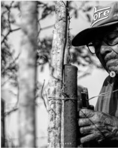 Da série de fotografias do cidadão Wanderson Andrade: https://www.instagram.com/wanderson_bnw/ : “António Pedro da Silva, 76 anos, agricultor. É natural do município de Pilar, estado de Alagoas. Vive na aldeia Cominho, Capela, há cerca de 20 anos, onde cuida de sua fazenda de mandioca. Aqui, o encontramos consertando a cerca que protege sua plantação.”