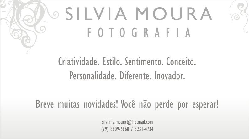 A fotógrafa e publicitária, Silvia Moura, tem feito um belo trabalho no ramo de fotografias e aproveitou essa temporada para abrir em seu Orkut uma promoção para você ganhar um ensaio fotográfico. Silvia tem contado com uma equipe de ouro, a exemplo, do estilista Abrahão Bispo. Confira a promoção no link e boa sorte.. Link http://www.orkut.com.br/Main#AlbumZoomuid=4623931818338862271&pid=1254760963219&aid=1254735715
