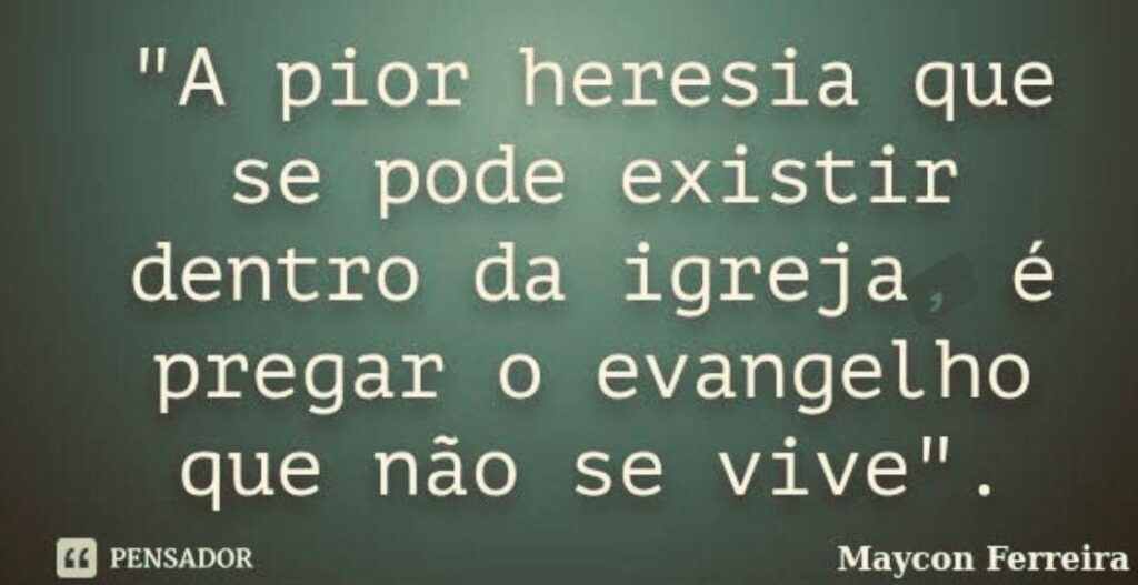 “A pior heresia que se pode existir dentro da Igreja é pregar o evangelho que não se vive.” Maycon Ferreira. Para reflexão de muitos nesta Semana Santa.