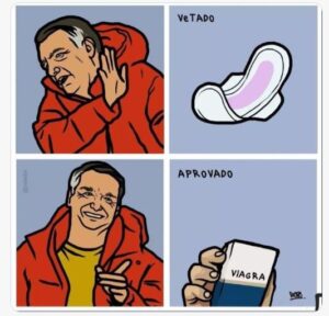 www.twitter.com/minc_rj O machófilo BolsoVírus, que quando teve uma filha menina disse que fraquejou, vetou os absorventes femininos, tão importantes para a superação da pobreza menstrual, mas financiou 35 mil pílulas de viagra para as forças armadas.🤔 É uma disfunção democrática! #ForaBolsonaro