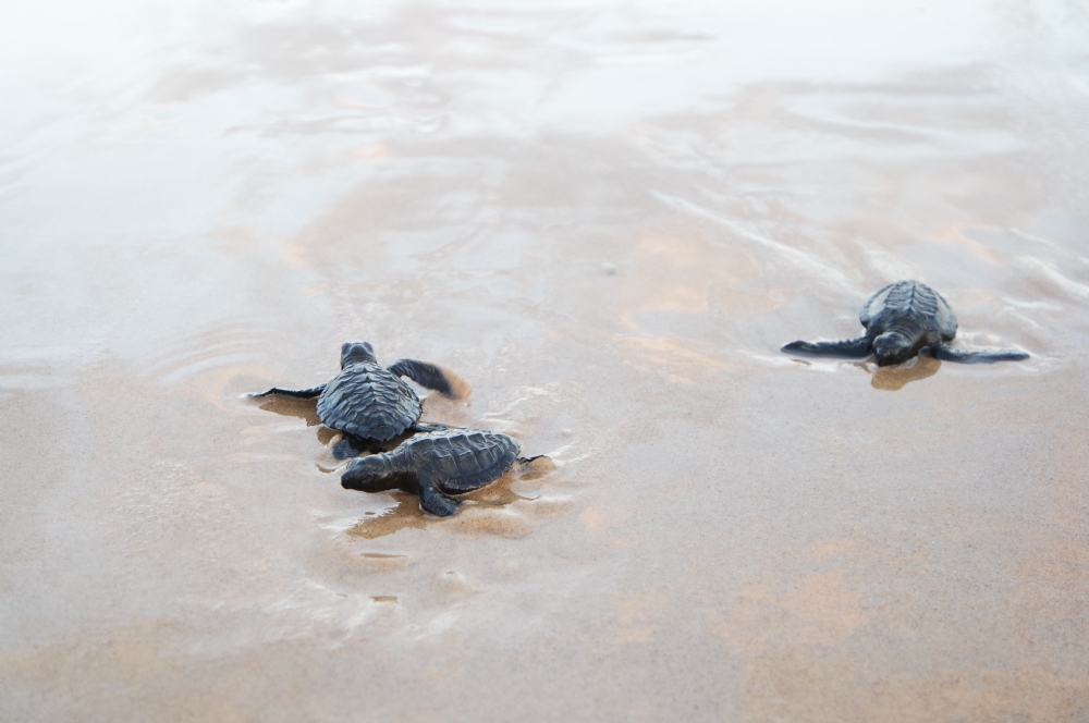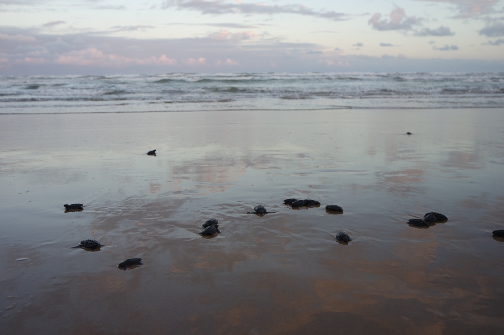 | Centenas de filhotes caminham para o mar |