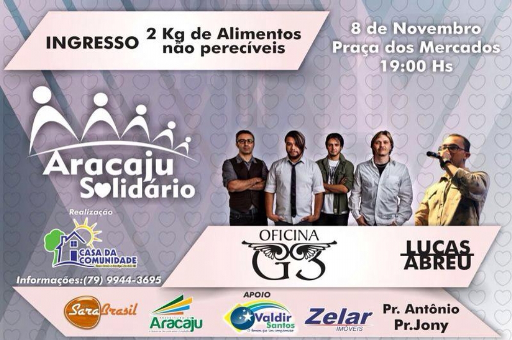 Dentro deste trabalho de solidariedade, a instituição organiza a 5ª edição do Aracaju Solidário que contará com atrações nacionais e locais como Oficina G3 e Lucas Abreu.