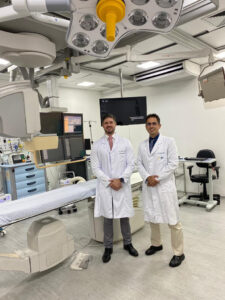 Raio-X do estado de Sergipe. O procedimento minimamente invasivo, que ocorreu no dia 07/04, no setor de Hemodinâmica do Hospital, contou com parte da equipe formada pelo radiologista intervencionista, Dr. Thiago Fabiano, do endoscopsita, Dr. Lucas Marques e do anestesiologista, Dr. Geraldo Oliveira.
