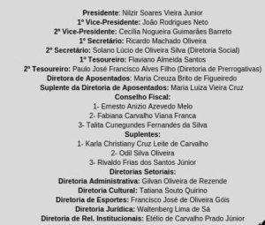 Nova diretoria da Associação Sergipana do MP assume hoje, 01, pela manhã Será realizada hoje, 01, às 10h, no auditório promotor de Justiça Valdir de Freitas Dantas, na sede do MPE/SE, a posse da nova diretoria da Associação Sergipana do Ministério Público, eleita no início de junho, tendo como presidente o promotor Nilzir Vieira, vice-presidente João Rodrigues Neto (leia toda diretoria no print ao lado).