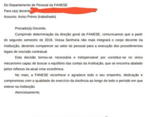 Fanese: alunos pedem explicação por conta da demissão de professores em massa através de e-mails E um grupo de alunos da Faculdade de Administração e Negócios de Sergipe – Fanese, enviou e-mail ao blog e relatou que estão preparando uma documentação que será enviada esta semana ao MEC, responsável pela habilitação das faculdades, denunciando a direção da instituição por realizar uma demissão em massa de professores, sem o menor esclarecimento para os docentes e os alunos, através de e-mails enviados pelo diretor financeiro e de pessoal. O blog está a disposição da direção para os devidos esclarecimentos.