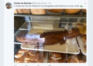www.twitter.com/Antonio_Doria O Jacaré da Orla de Atalaia foi homenageado pela Padaria em poço verde.